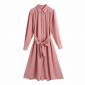 Hot Sale Women Patch Pocket Striped Midi Shirt Dress Female Long Sleeve Clothes Casual Lady Loose Vestido D8200