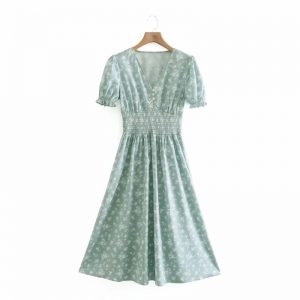 Original price was: $44.00.$39.78Current price is: $39.78.Summer Women V Neck Elastic Waist Printed Midi Dress Female Puff Sleeve Clothes Casual Lady Loose Vestido D7709