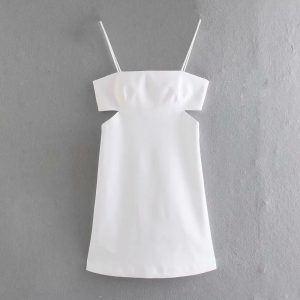 Original price was: $41.00.$37.45Current price is: $37.45.Summer Women Hollow Design White Suspender Mini Dress Female Sleeveless Clothes Casual Lady Slim Vestido D7637
