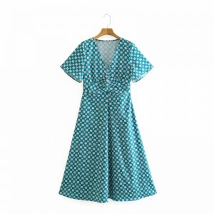Original price was: $44.00.$39.69Current price is: $39.69.Summer Women Geometric Printing V Neck Pleating Midi Dress Female Short Sleeve Clothes Casual Lady Loose Vestido D7858