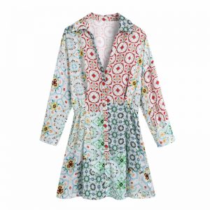 Original price was: $37.00.$35.58Current price is: $35.58.Women Geometric Patchwork Print Turndown Collar Mini Shirt Dress Female Nine Quarter Sleeve Clothes Casual Lady Vestido D8158