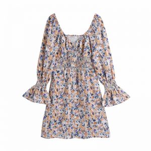 Original price was: $47.00.$40.97Current price is: $40.97.Summer Women Floral Printing Square Collar Lace Up Mini Dress Female Puff Sleeve Clothes Casual Lady Loose Vestido D7851