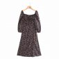 Women Vintage Floral Print Tiered Ruffle Splicing Midi Dress Female Nine Quarter Sleeve Clothes Leisure Lady Loose Vestido D8057
