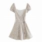 Summer Women Vintage Printing O Neck Lace Up Loose Midi Dress Female Flare Sleeve Clothes Casual Lady Vestido D7701