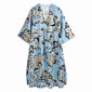 Summer Women V Neck Sashes Vintage Printed Midi Dress Female Puff Sleeve Clothes Casual Lady Loose Vestido D7711