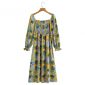 Summer Women Floral Print Puff Sleeve Elegant Midi Dress Female Sashes Clothes Leisure Lady Loose Vestido D7973