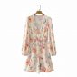 Hot Sale Women Digital Print V Neck Sashes Mini Dress Female Long Sleeve Clothes Casual Lady Loose Vestido D8216
