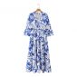 Hot Sale Women Floral Print V Neck Midi Dress Female Lantern Sleeve Clothes Casual Lady Loose Vestido D8192